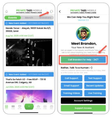 Click “Brandon AI – Assistant” in your PrivateTabs toolbar to start a conversation instantly. Whether you’ve got a question about setup, features, or troubleshooting, Brandon’s got your back 24/7. - By Phone